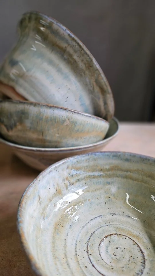 Each piece I make — wheel-thrown or handbuilt — is formed slowly by hand, honouring movement, texture and the beauty of imperfection. My glazes echo the landscape around me: mossy greens, rain-washed blues, earth after storm. No two pieces are ever the same. I value the evidence of the maker in the made.